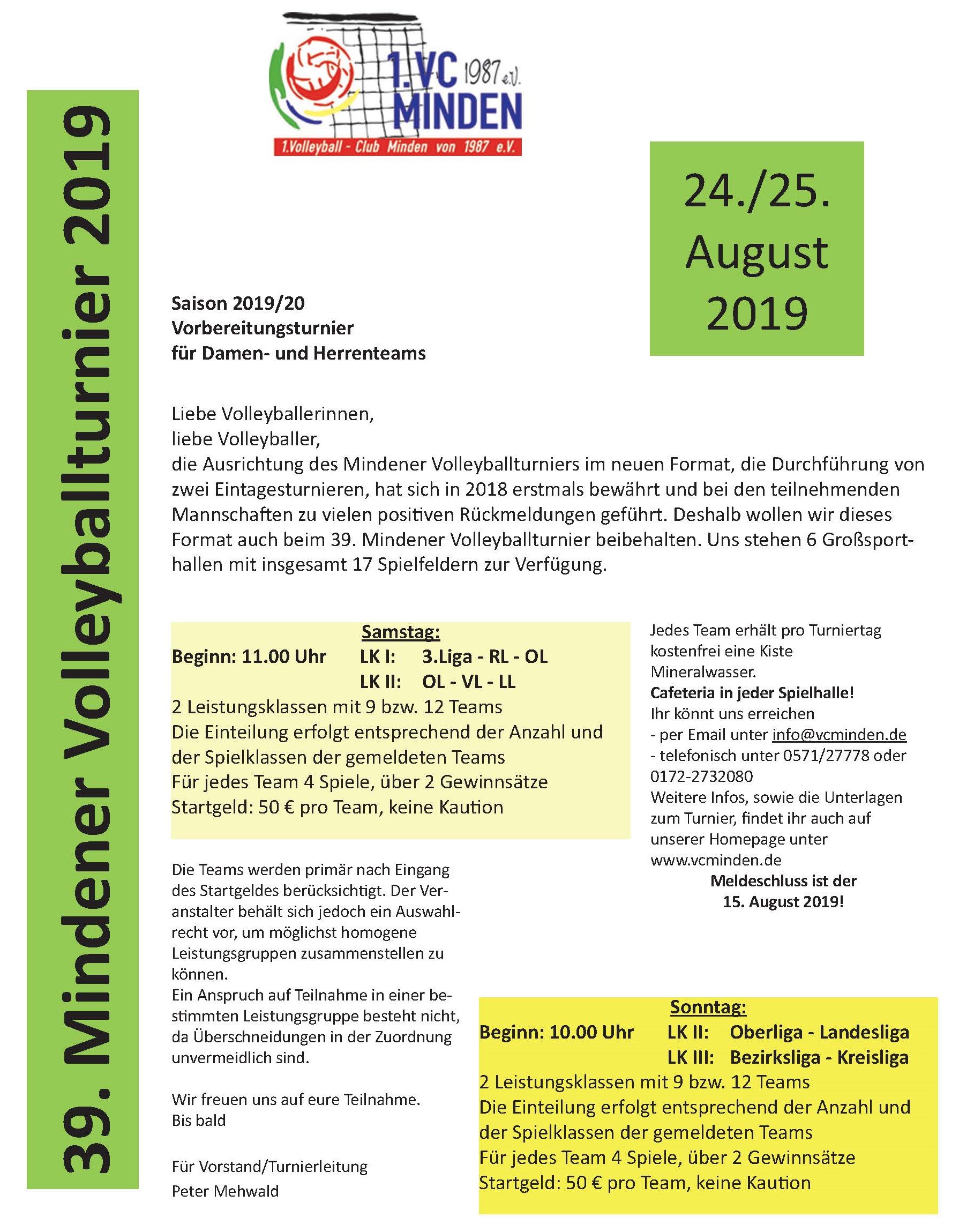 Die 39. Auflage des Mindener Volleyballturnieres findet am 24. und 25. August 2019 statt.